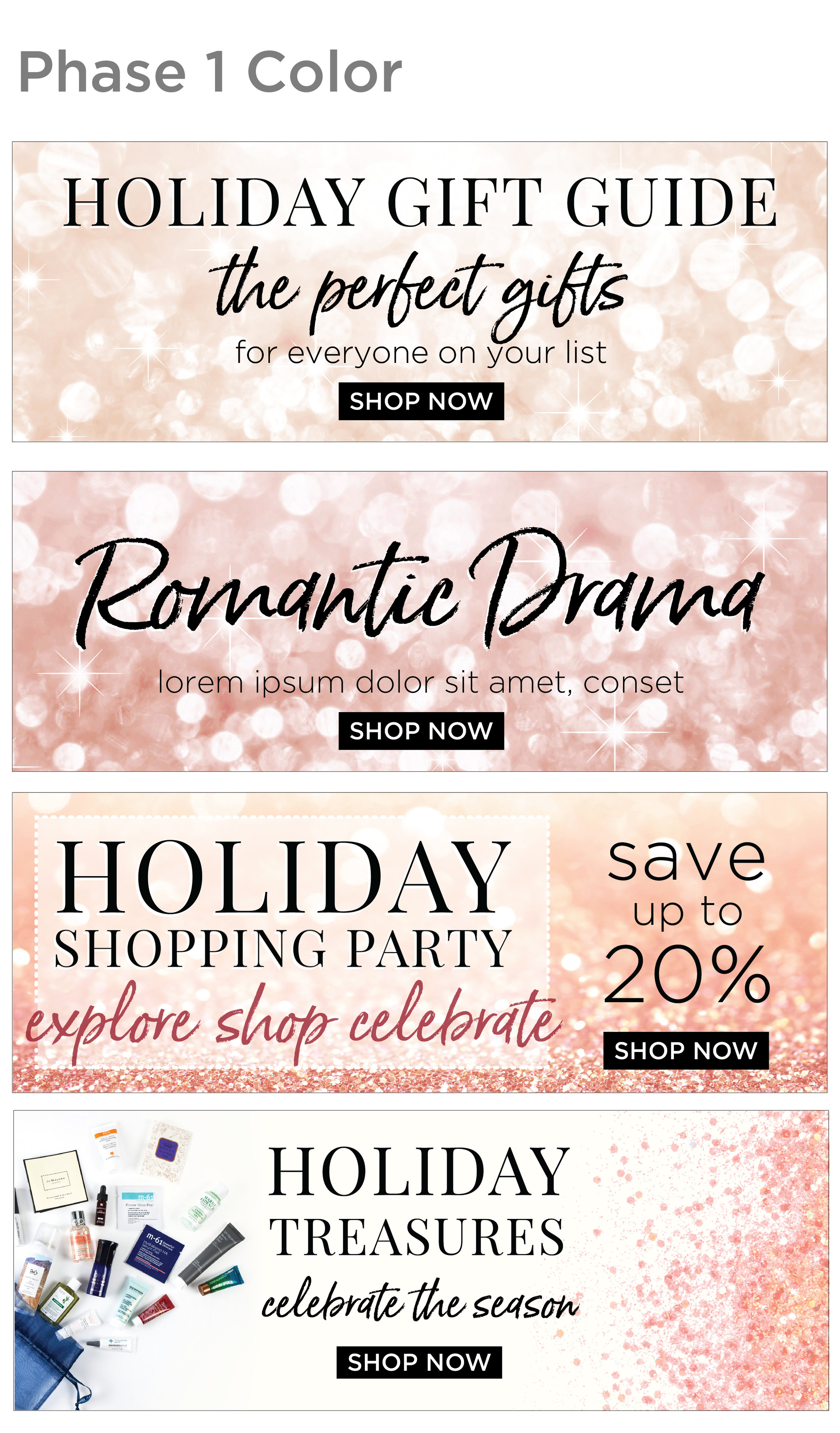 Below is a campaign guideline that I created for internal use with images and exact color swatches to be used throughout the holiday season.